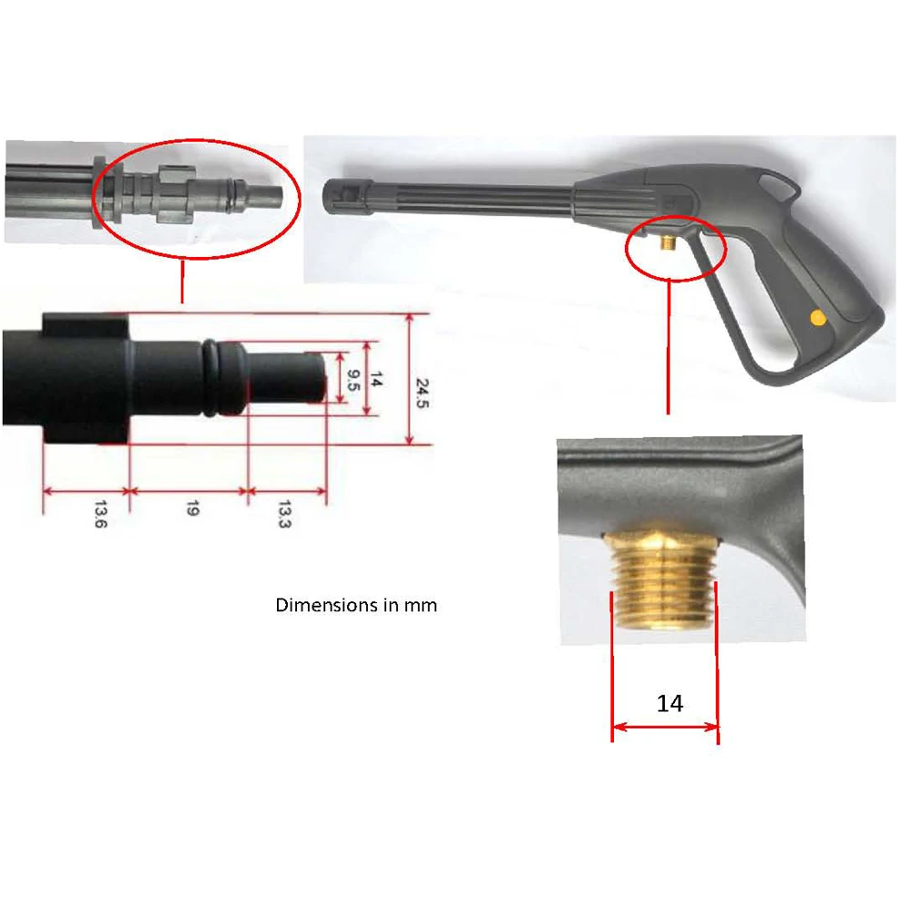 Важно:Так как существует два типа пистолетаДля этого бренда мойки высокого давления. Пожалуйста, проверьте размер подключения и убедитесь, что он подходит для вашей машины. Мы не несем никакой ответственности за несовместимость пистолета и копья. Если вы не уверены, пожалуйста, свяжитесь с нами и отправьте нам фотографию вашего оригинального пистолета и копья, мы поможем выбрать подходящий продукт.