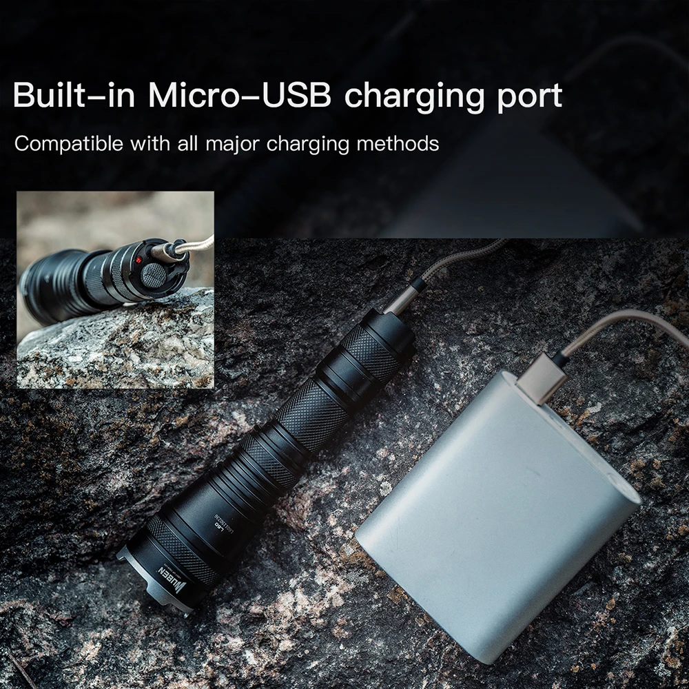 【 Качество в Военном Стиле и водонепроницаемость IP68 】фонарик wuben принимает анодирование военного класса. Высокая водонепроницаемость, ударопрочность и долговечность. Не будет ржавчины или коррозии. Защита от скольжения и водонепроницаемость достигает IP68, чтобы предотвратить попадание воды.