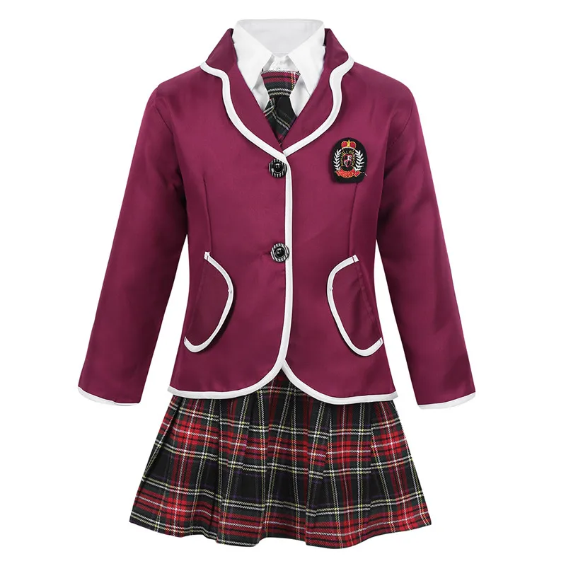 Детская школьная форма в британском стиле для девочек, школьная форма, костюм пальто с длинными рукавами и рубашка мини-юбка с галстуком, Детский костюм с аниме