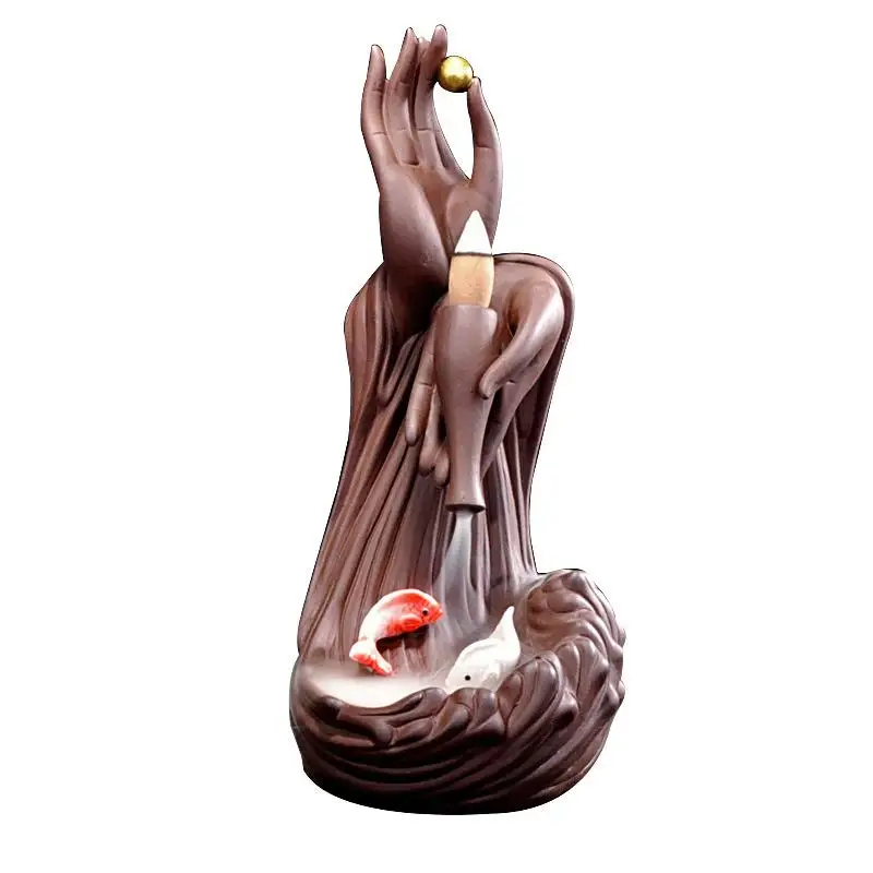 Будда ручной фонтан благовония горелка рыбный дым водопад ладан держатель фиолетовый песок керамические Благовония горелка креативный домашний декор