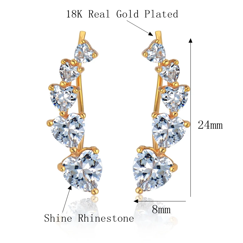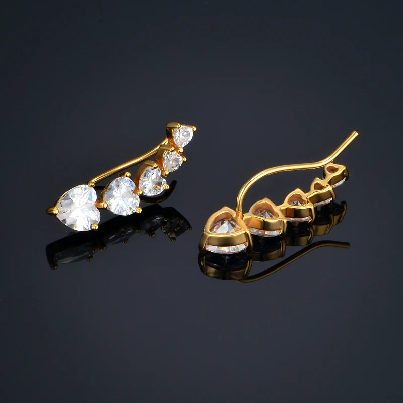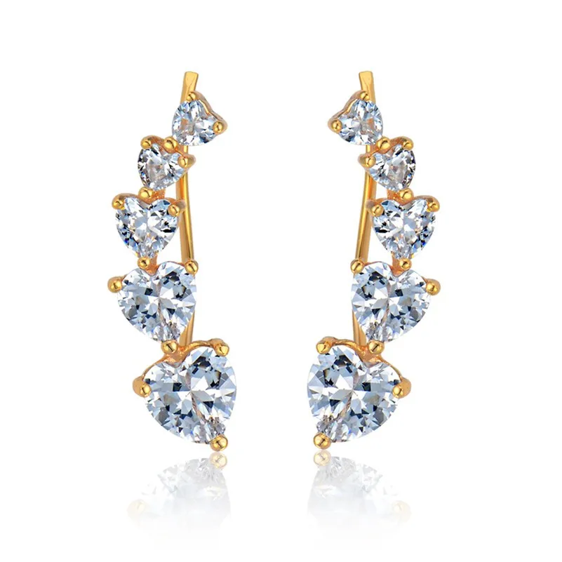 Модный темперамент манжета сердце кристалл циркониевый зажим серьги для женщин золотой цвет Шарм ювелирные изделия