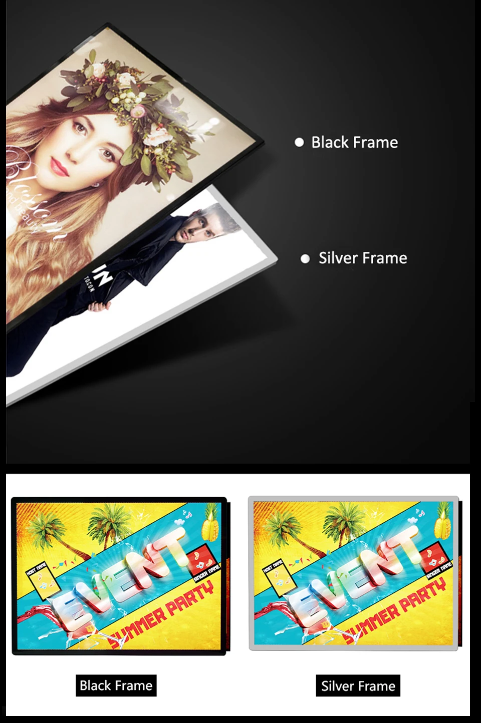 Светодиодный Плакат рамка Рекламные световые коробки закаленное стекло ультра-тонкий фильм плакат световая коробка можно повесить на стену черный и серебристый