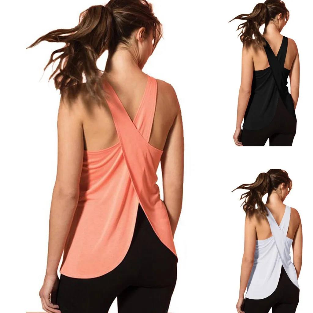 Женская Повседневная Спортивная майка без рукавов с перекрестной спинкой для йоги