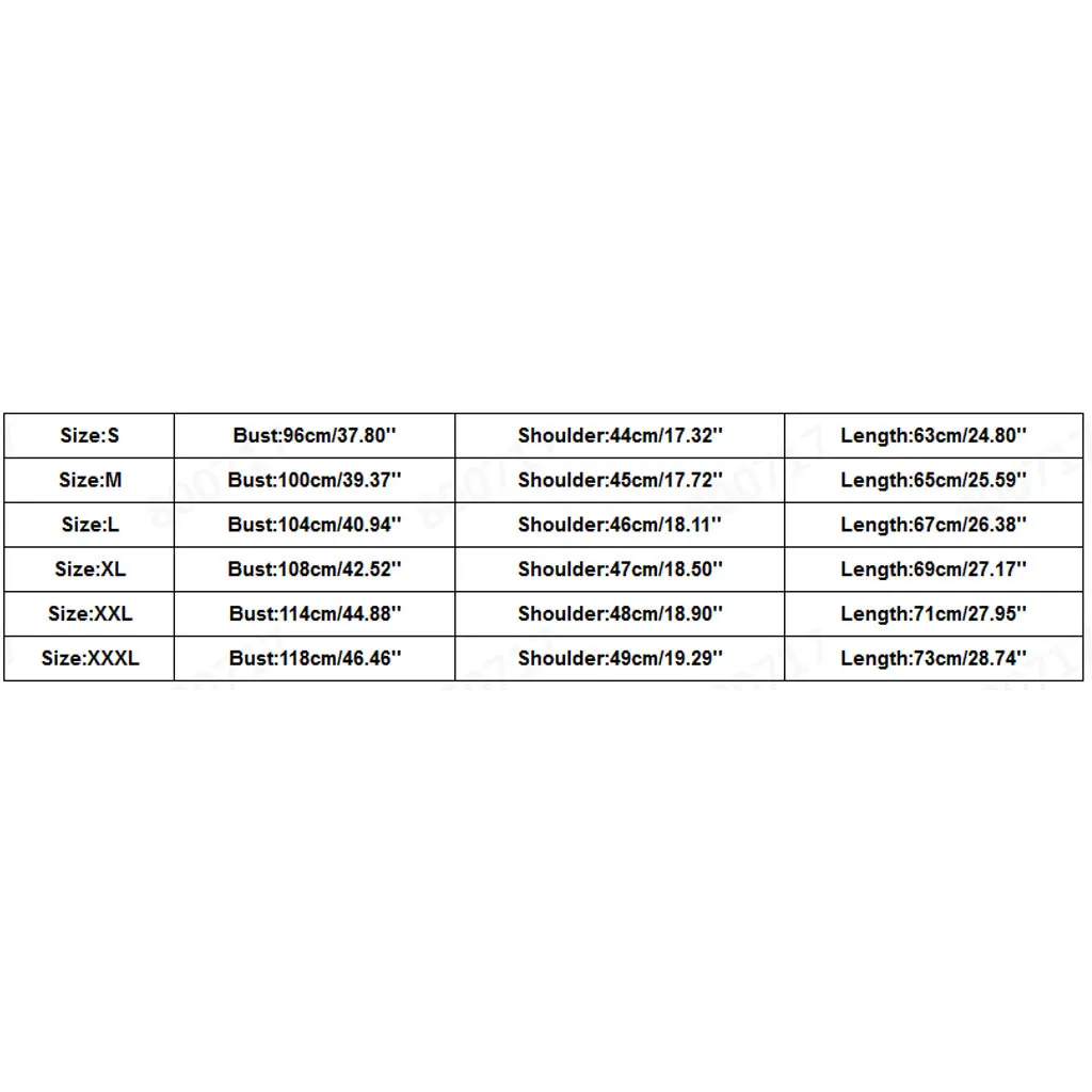 Размер Бюст Плечо Длина S 96 см/37,80'' 44 см/17,32'' 63 см/24,80'' М 100 см/39,37'' 45 см/17,72'' 65 см/25,59'' L 104 см/40,94'' 46 см/18,11'' 67 см/26,38'' XL 108 см/42,52'' 47 см/18,50'' 69 см/27,17'' XXL 114 см/44,88'' 48 см/18,90'' 71 см/27,95'' XXXL 118 см/46,46'' 49 см/19,29'' 73 см/28,74''