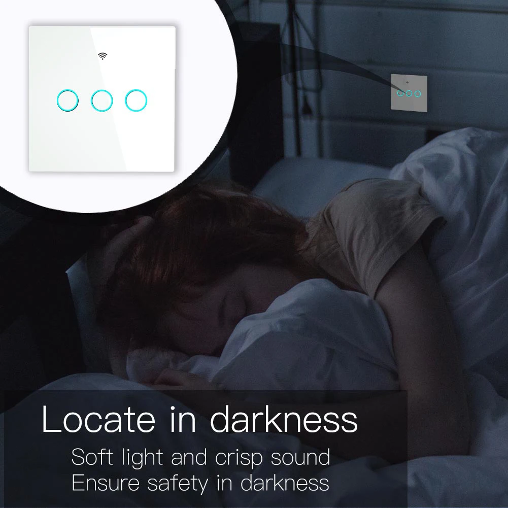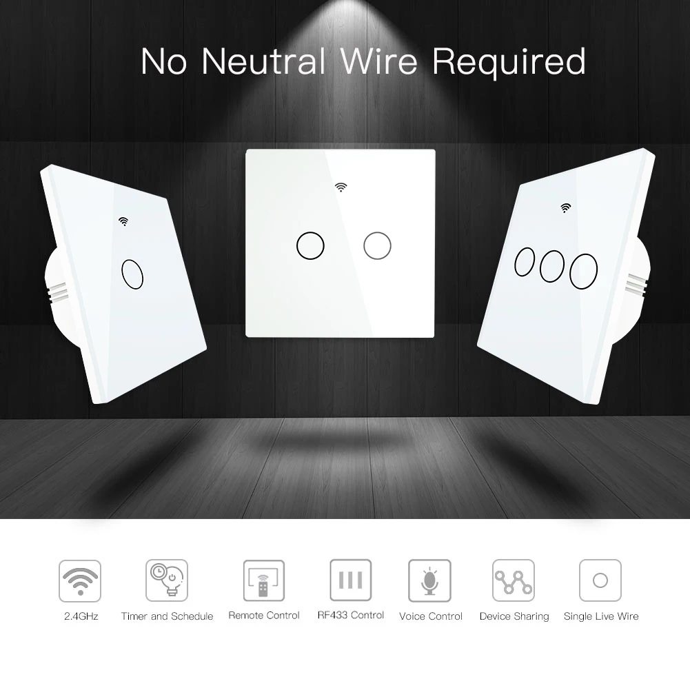 RF433Беспроводным доступом в Интернет-Настенный сенсорный выключатель без нейтрального проводаБеспроводнойПульт дистанционного управления Управление SmartОднопроводный настенный выключатель 1 2 3Работа с Alexa Google Home