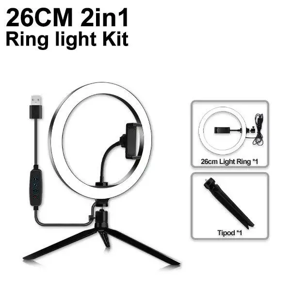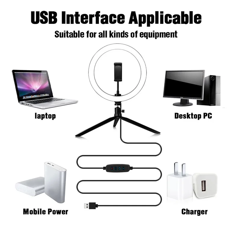 16 см и 20 см диммируемая настольная Светодиодная лампа для селфи для студийной фотосъемки, видеосъемки с мини-штативом, usb-разъемом, прямая трансляция, кольцевая лампа