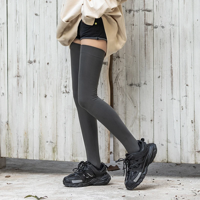 Зимние теплые чулки до бедра в стиле Харадзюку, для молодых женщин, сохраняющие тепло, уличная одежда, обтягивающие длинные носки, однотонные, черные, серые