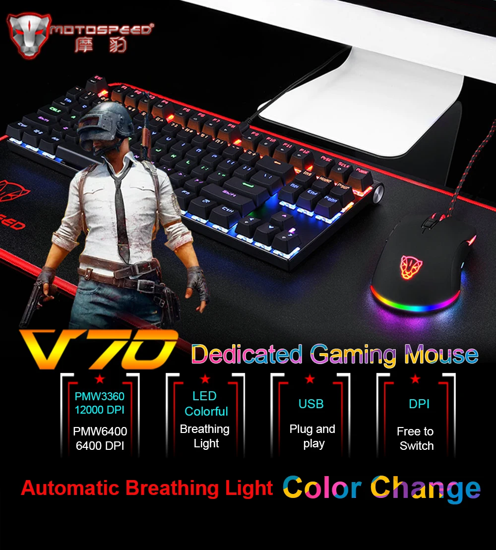 Motospeed V70 игровая мышь USB Проводная PMW6400 6400 DPI PMW3360 12000 DPI мышь RGB многоцветная дышащая подсветка для геймера компьютера