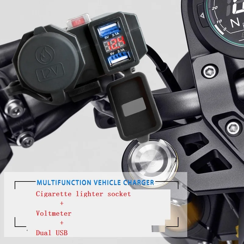 ☞Это зарядное устройство USB для мотоциклов, можно использовать прикуриватель, подключается к USB зарядке мобильный телефон или другие электронные продукты. ☞С регулируемым монтажным кронштейном, может быть установлен на ручке или зеркале заднего вида мотоцикла или скутера. ☞Можно заряжать 2 устройства одновременно, компактный дизайн, меньше и легче. ☞Подходит для мотоциклов 12-24 В, имеет защиту от короткого замыкания и технологию защиты от перегрузки. ☞Универсальный кабель быстрого отключения SAE, легко устанавливается и снимается. ☞Новый дизайн резиновый USB колпачок, IP54 Пылезащитный Водонепроницаемый, удобный и безопасный. ☞Абс высокой температуры и коррозии, супер прочный и безопасный.