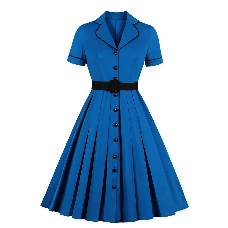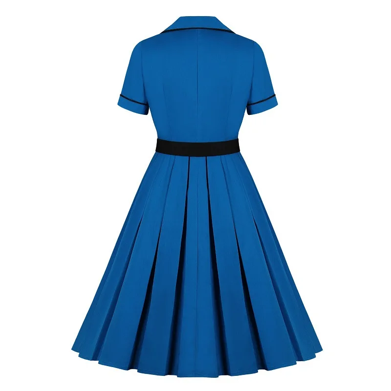 SISHION Королевский синий хлопок женское платье VD1361 халат летние хлопковые платья с коротким рукавом Качели 50s винтажное платье размера плюс с поясом