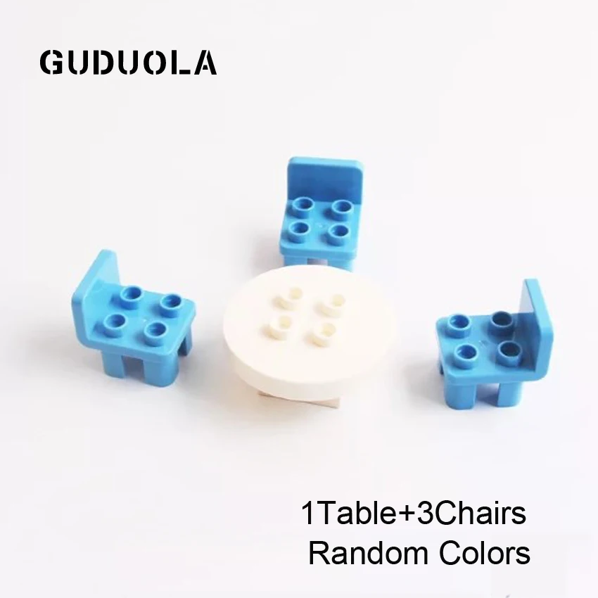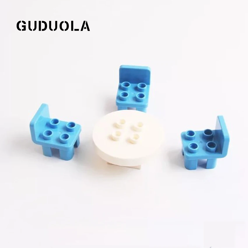 GUDUOLA Big Bricks Table Set Amusement Park Accessory Home House Chairs Playmobil Toys Building Block For Children