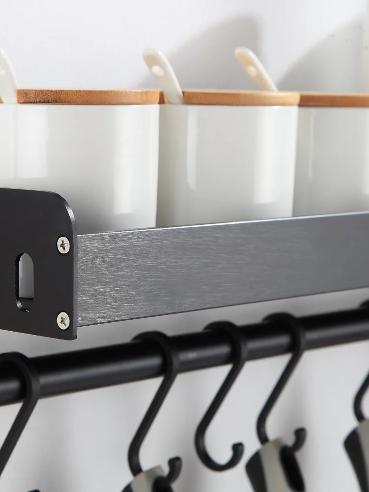 Кухонная стойка для специй изготовлена из алюминиевого сплава, который является прочным и не ржавым. Мы предлагаем липкий клей и srcews, вы можете выбрать сверление или нет. Есть 3 размера в наличии: 30 см, 40 см и 50 см.