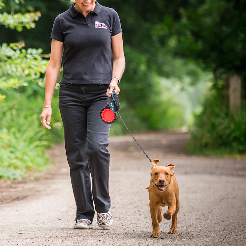 Выдвижной Поводок для собак, автоматический удлиняющийся поводок для собак, прогулочный поводок для щенков, набор поводков для собак и мисок для маленьких средних собак, 5 мЦвета:Синий/красный