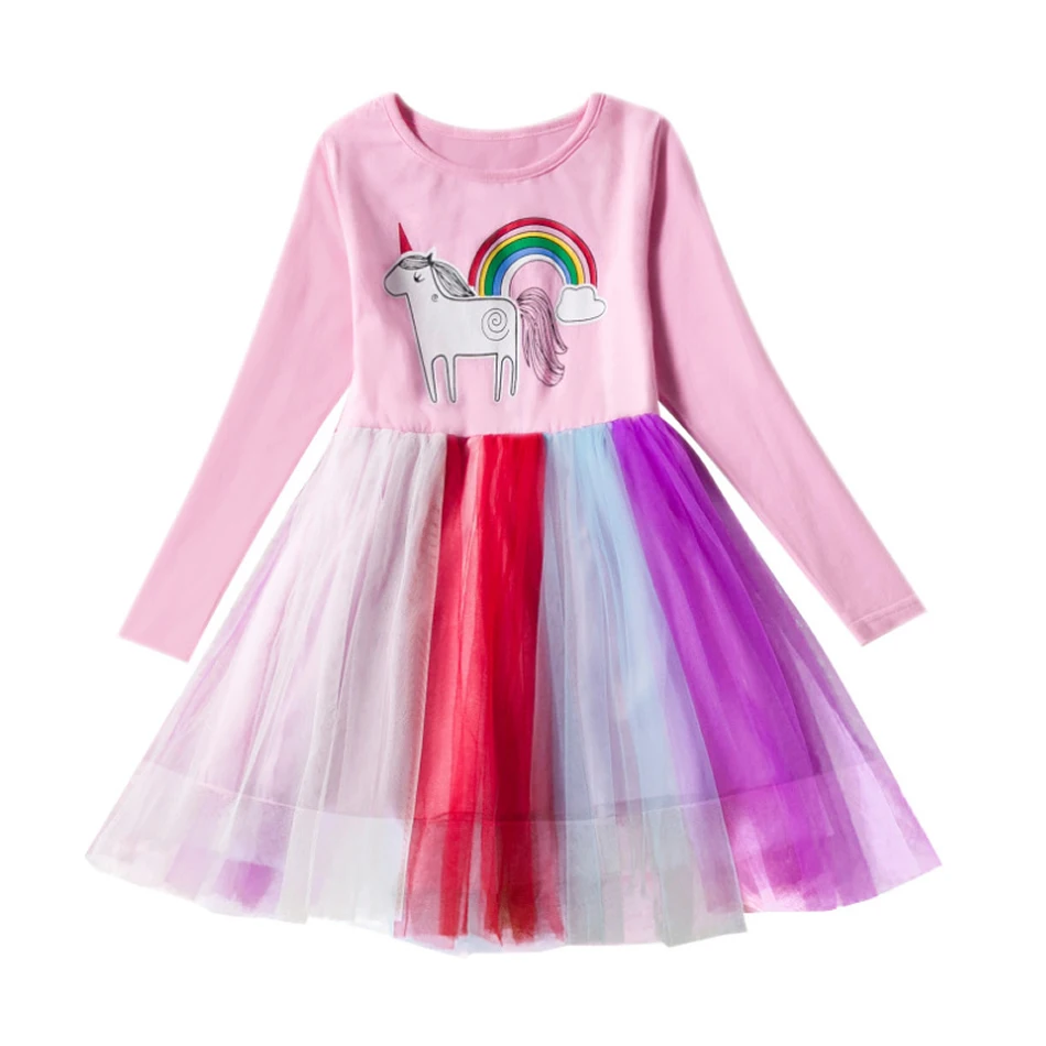 Тема: платье с рисунком единорога для девочек; детское яркое бальное платье; костюмы для игр в кино Цвет: темно-розовый, светло-розовый Вес: около 0,15-0,22 КГ/шт Возраст: 2-6 лет Китайский размер: 100-110-120-130 Размер США: 2 T, 3 T, 4 T, 5 T, 6 T Способ стирки: машинная стирка, ручная Стирка в деликатной воде и сушка Упаковка: платье + Opp сумка