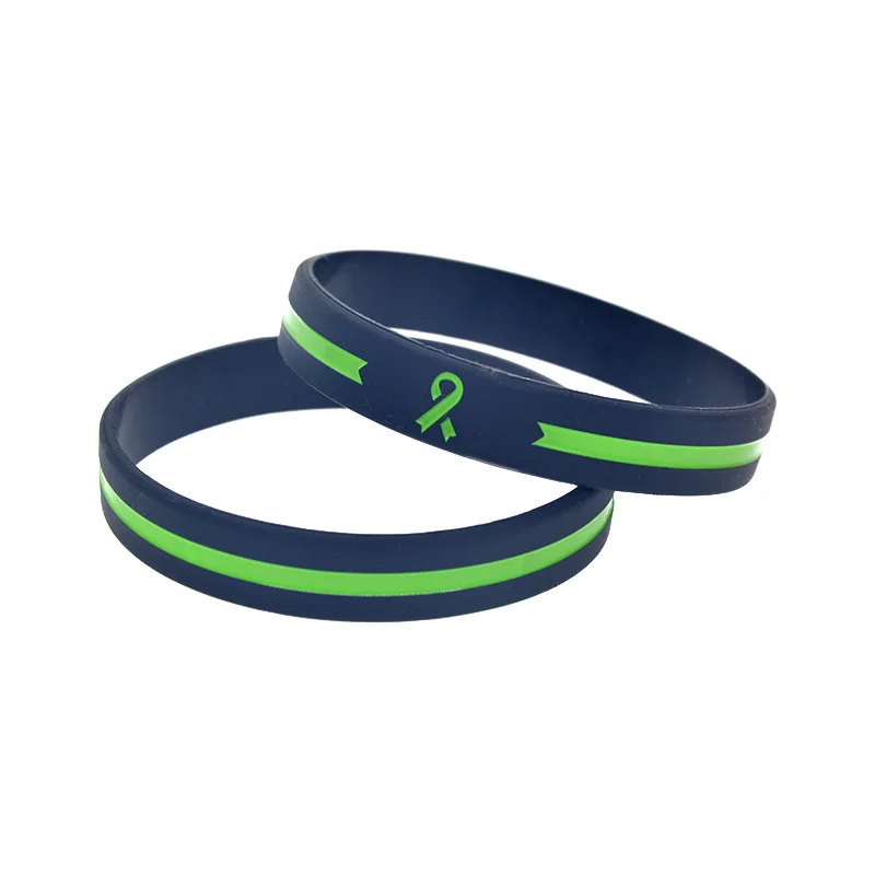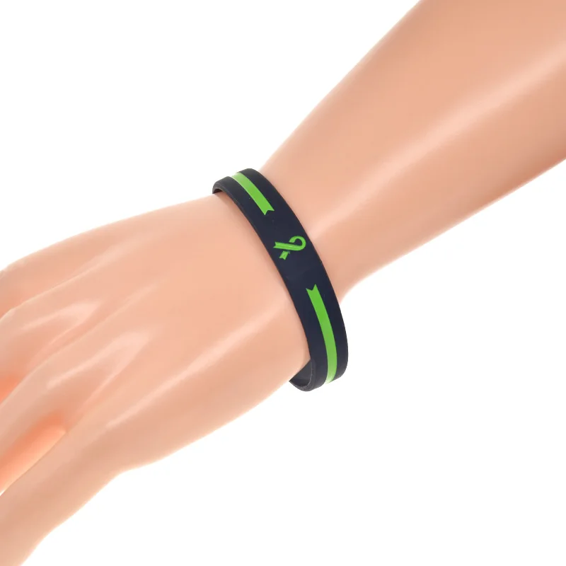 Силиконовый браслет на руку с зеленой лентой