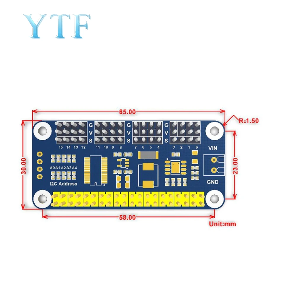 ● Поддержка до 16 сервоприводы или pwm-выходы, украшенное мозаикой из драгоценных камней, 12-бит (4096 уровень)