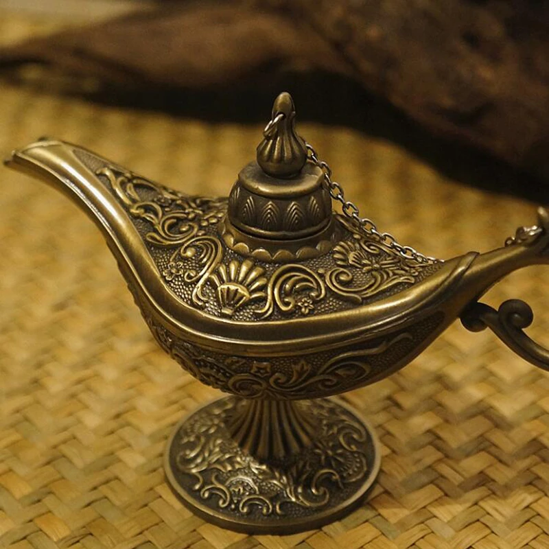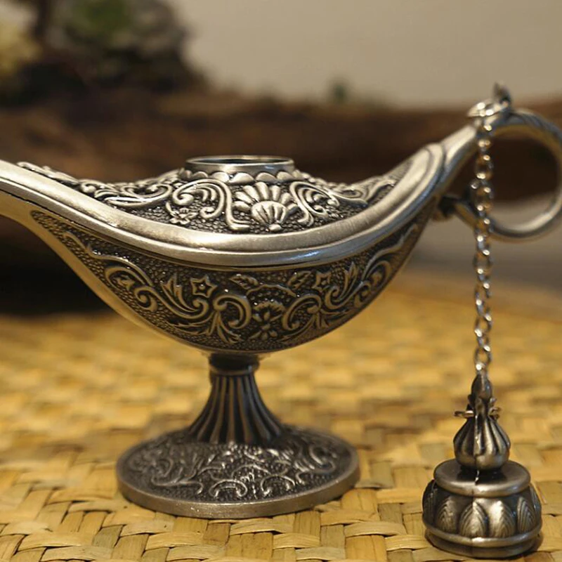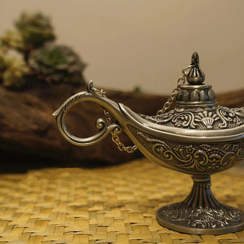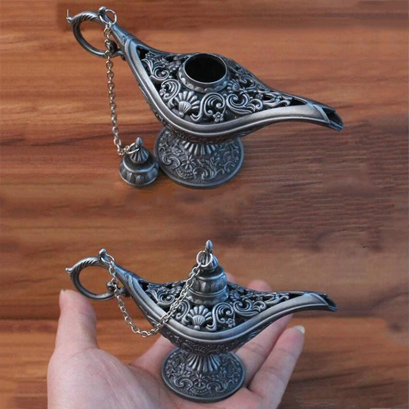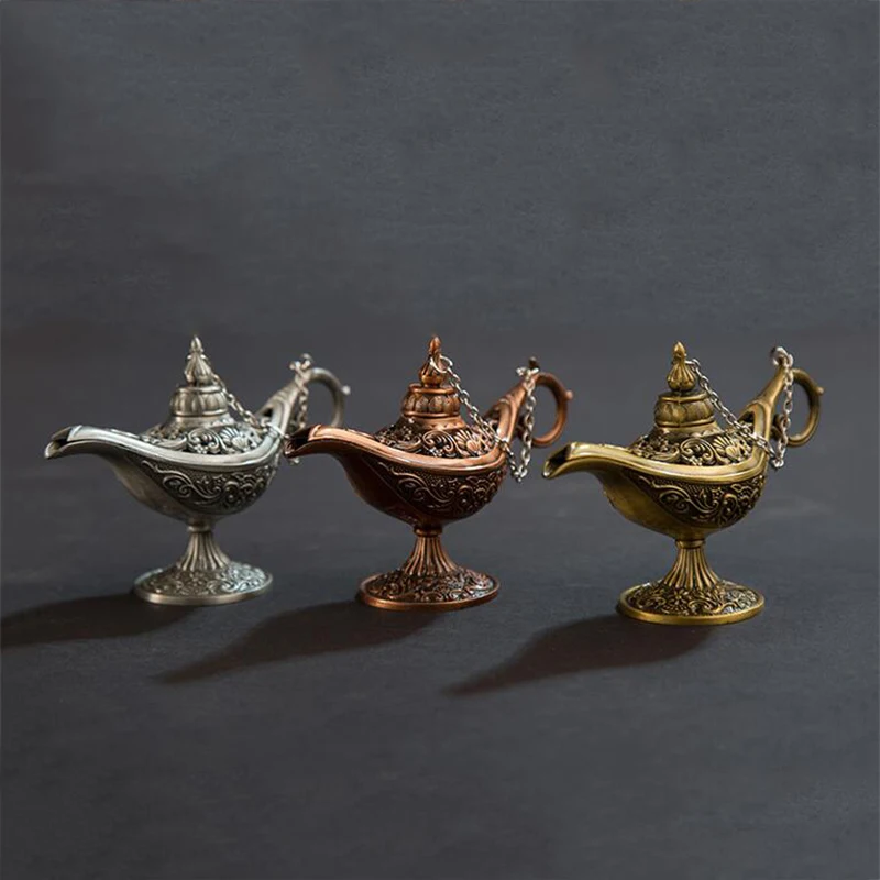 Название продукта: лампа Aladdin Материал: цинковый сплав Размер: 11. 5*4*7,5 см Цвет: древнее серебро, латунь, красная медь Простая форма, не выцветает, не ржавеет Применимые предметы: предметы интерьера, подарки