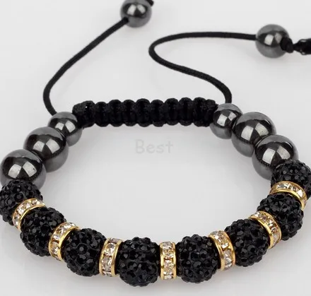 Min.$15 Mixed Order+Free Shipping+Gift.Black 10mm micro pave cz Disco ball Beads ESNS Crystal crystal Bracelet Men Jewelry.