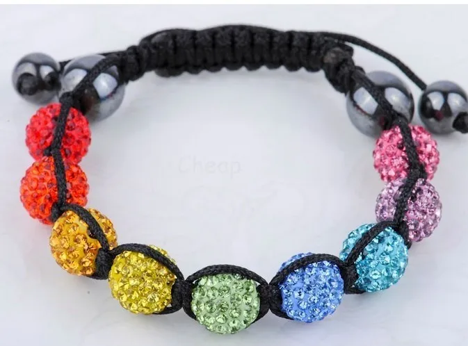 Min.$15 Mixed Order+Free Shipping+Gift.rainbow hot 10mm micro pave cz Disco Beads Crystal crystal Bracelet Jewelry For Women.