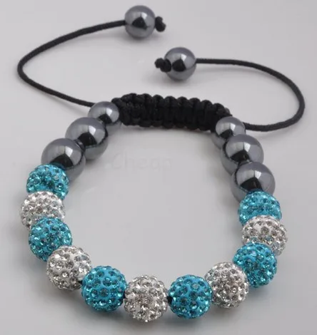 Min.$15 Mixed Order+Free Shipping+Gift.white blue mix 10mm micro pave cz Disco Ball Beads Crystal Women Men crystal Bracelet.
