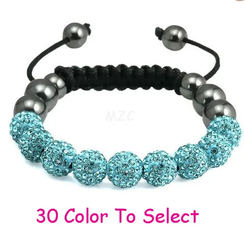 Min.$15 Mixed Order+Free Shipping+Gift.Green Blue mixed hot 10mm micro pave cz Disco Beads Crystal Women Men crystal Bracelet.