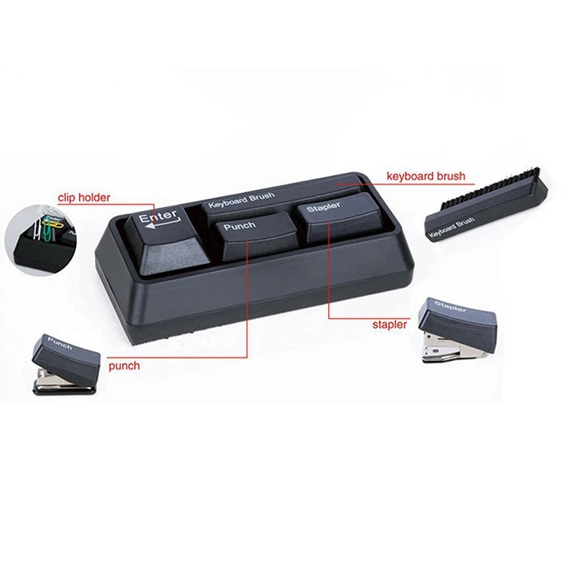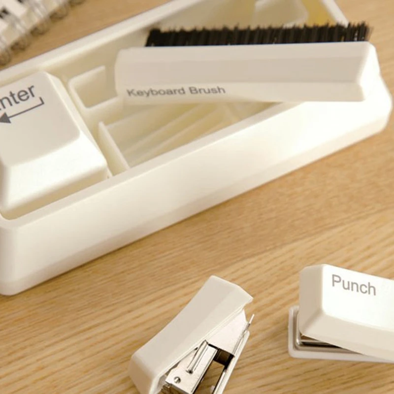 Creative stationery including Mini puncher 1pcs, Mini stapler 1pcs, Keyboard brush 1pcs, Clip adsorption 1pcs