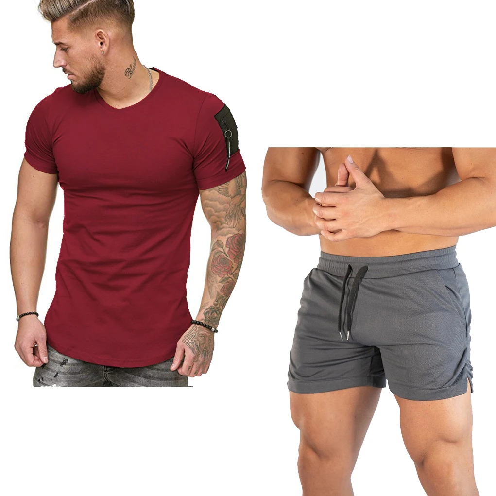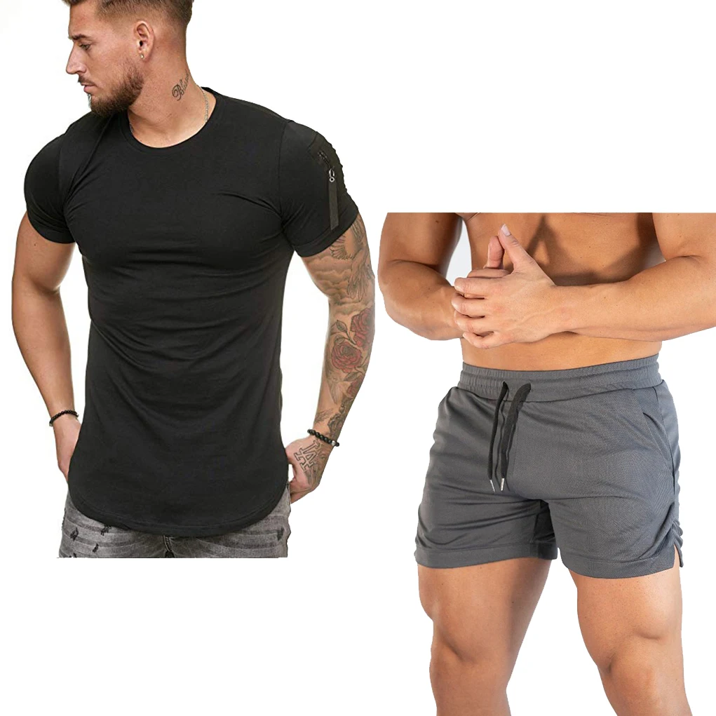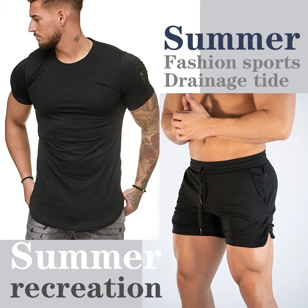 Новые летние мужские шорты + футболка, спортивные штаны для фитнеса, бодибилдинга, повседневные спортивные шорты для бега, спортивные штаны