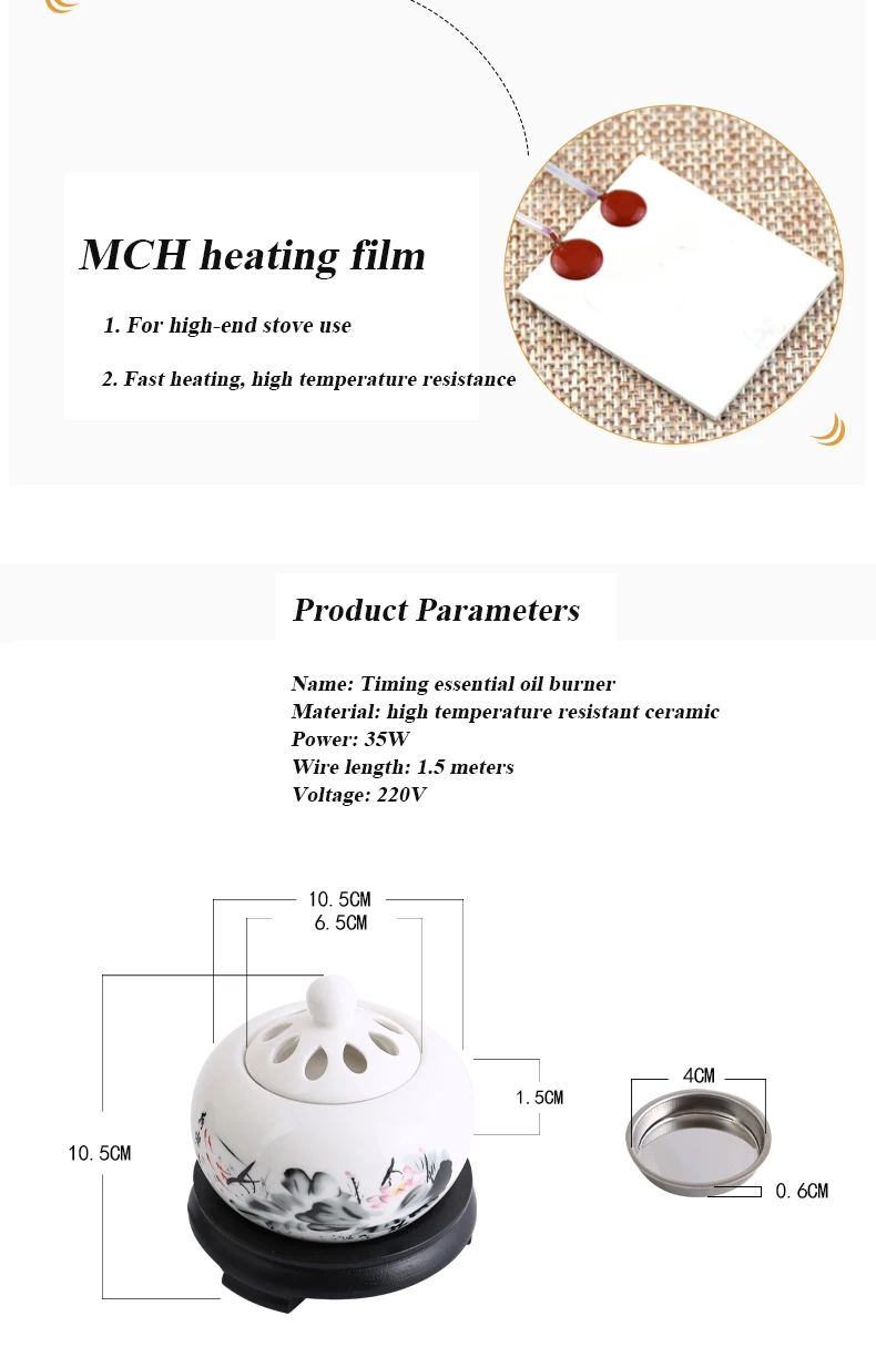 1. Эфирное масло, температура обычно регулируется до 100 °, и время устанавливается до 2 часов. 2. Ароматный порошок, температура обычно регулируется до 200 °, время устанавливается до 4 часов. 3. Деревянный блок (например: сандаловое дерево), температура обычно регулируется до 240 °, и время устанавливается до 4-5 часов. 4. В процессе использования порошка и деревянных блоков, пожалуйста, положите специи в блюдо, что удобно для очистки и хорошо влияет на ароматерапию.