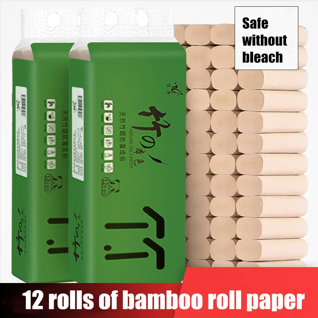 Бумажные салфетки для туалета, мягкие домашние 12 рулонов из бамбукового волокна, рулонная бумага первичного цвета без отбеленных бумажных полотенец, Прямая поставка
