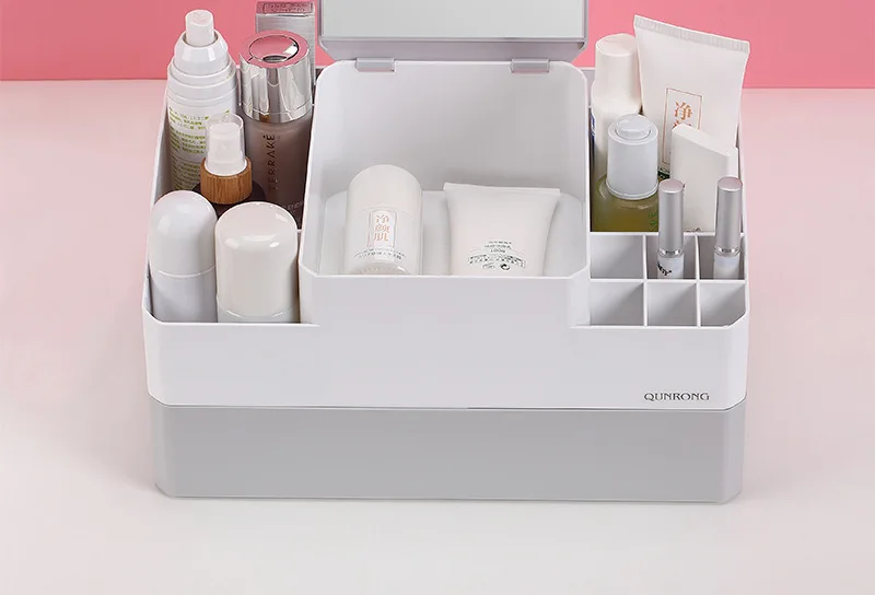 Karleksliv Милая косметическая коробка для хранения с зеркалом для макияжа простой дизайн большой емкости Двухслойный дизайн может разместить ювелирные изделия