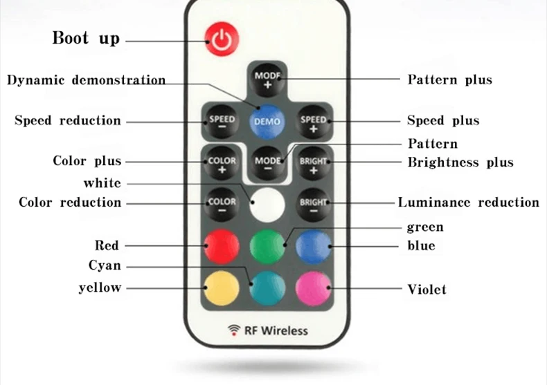 Цвета, могут мигать и постепенно меняться, управляются дистанционным управлением