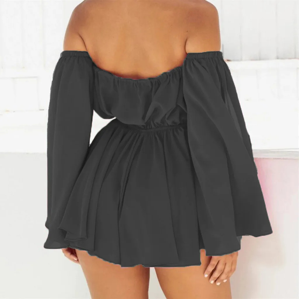 Модное женское сексуальное шифоновое однотонное мини-платье со шнуровкой и длинным рукавом