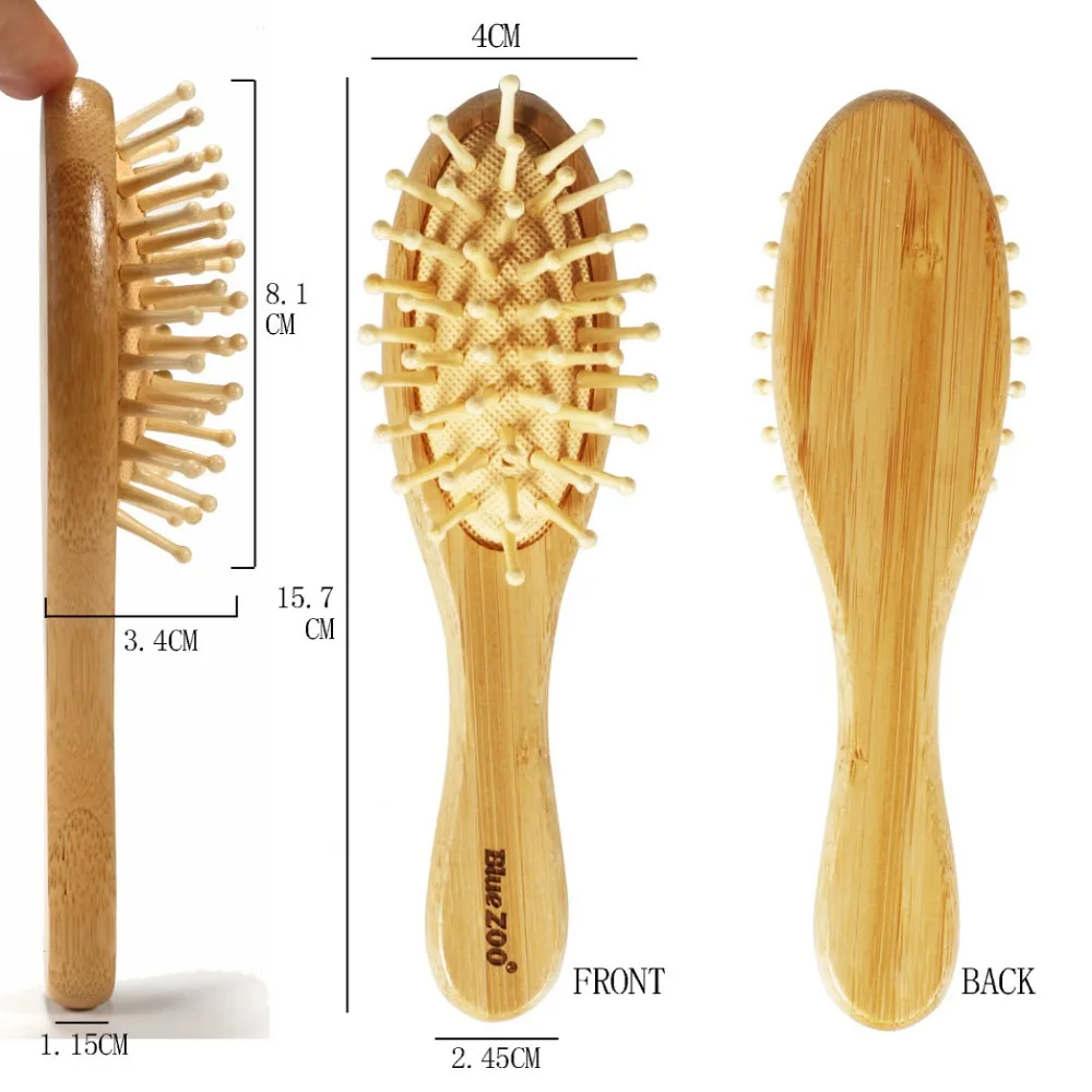 Мини натуральная бамбуковая щетка для волос, Бамбуковая щетина, массажная расческа для улучшения роста волос, предотвращает потерю волос, перхоти, кожу головы