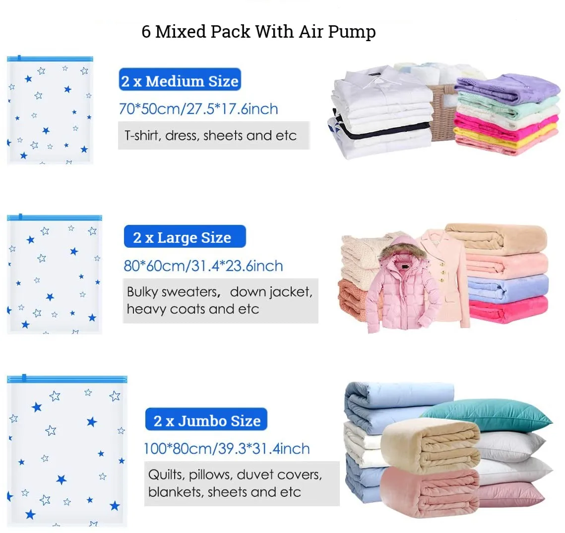 2. Вакуумное сжатие одежды, Экономия до 75% пространства для хранения.