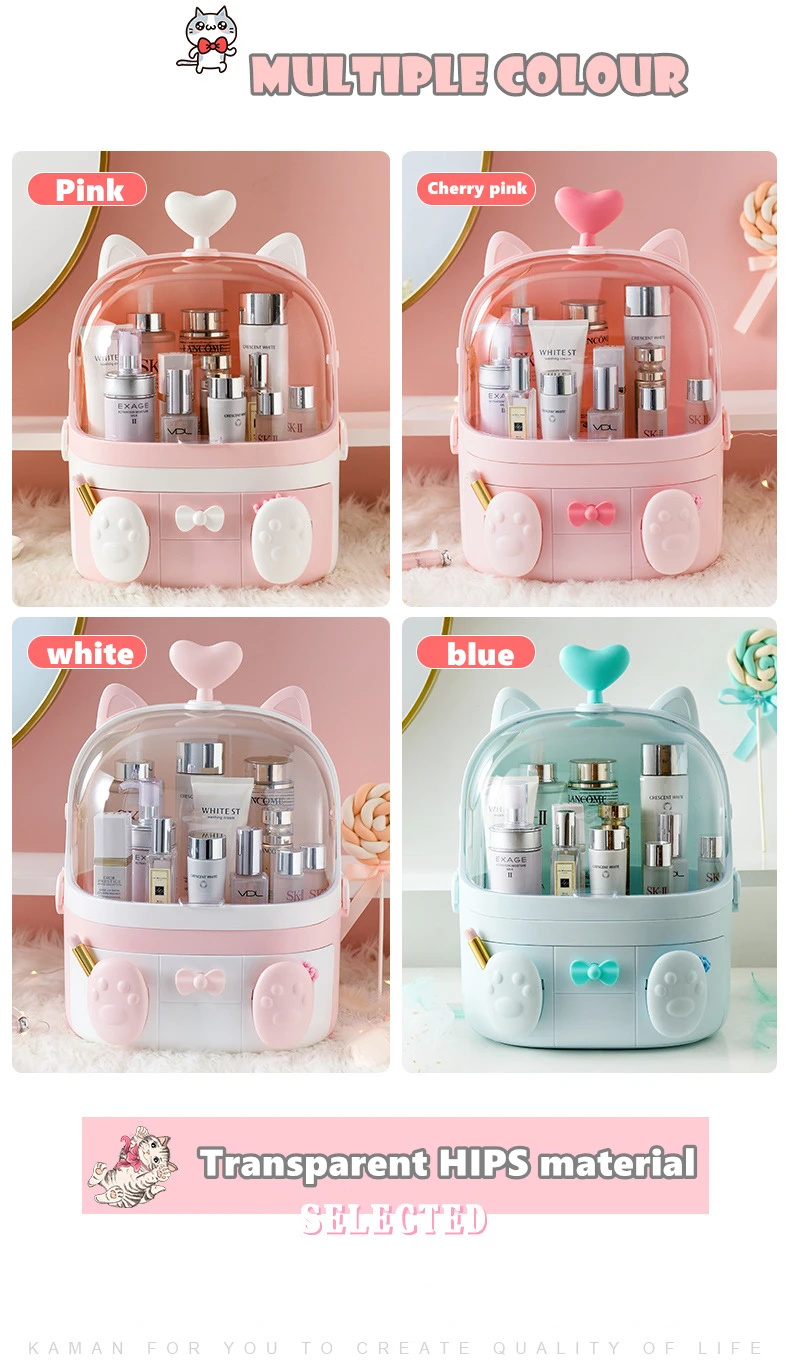 Karleksliv милый косметический ящик для хранения, большая емкость, пылезащитный и водонепроницаемый, внешний вид котенка, Двухслойный дизайн