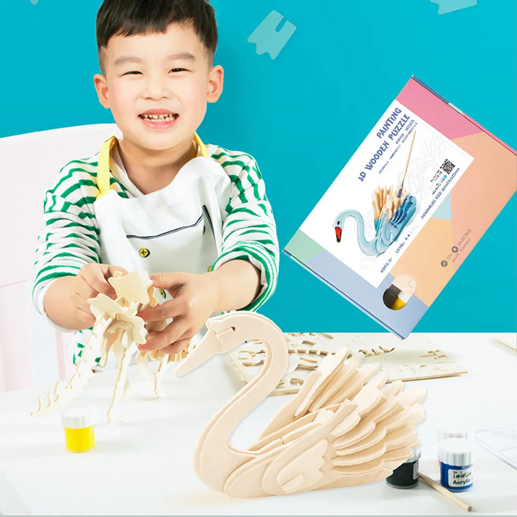 3D деревянная головоломка, модель, набор для рисования, игрушки для детей, пазлы, Обучающие промыслы