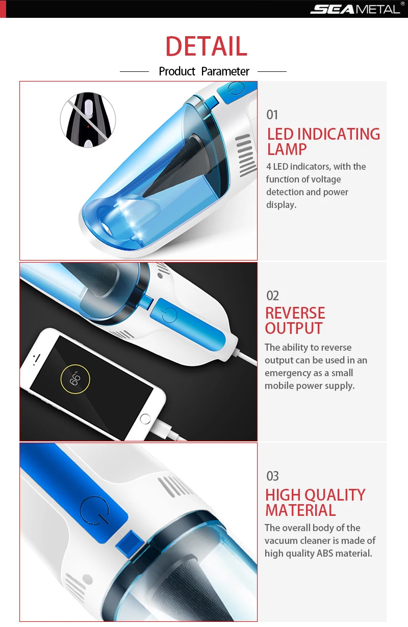 2. Универсальность и сильное всасывание: 120 Вт автомобильный вакуум, супер Мощное всасывание, поддержка сухого и влажного использования, может легко подобрать пыль, крошку, волосы для домашних животных, жидкость и многое другое. Оснащен 2 различными типами насадок, чтобы сделать его чистым хорошо в каждой области вашего дома или автомобиля. Идеально подходит для различных применений, используется для очистки автомобиля.
