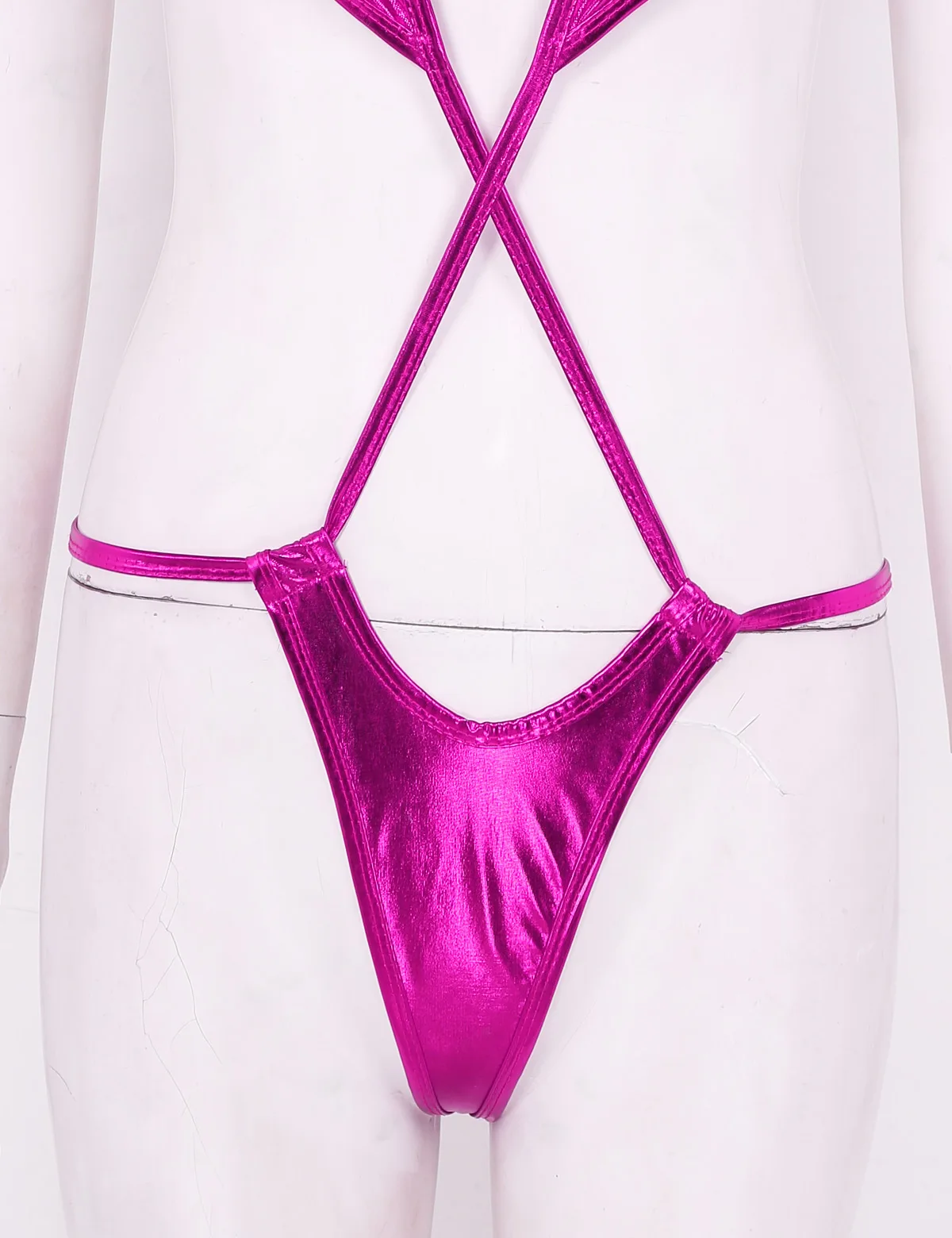 Минимальный охват, вырез на шее и открытая спина, перекрещивающиеся бретельки на животе и регулируемый ремень на спине.