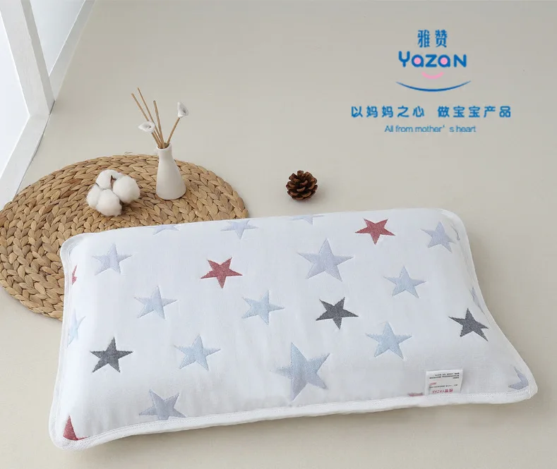 Yazan шестислойная наволочка для детей Спецификация: 35 см * 55 см Количество слоев: 6 слоев Цвет: олень, бегущий кролик, еврозвезда, розовое облако, Голубое облако, двухцветный медведь, кленовый лес, Материал: 6 слоев хлопковой марли