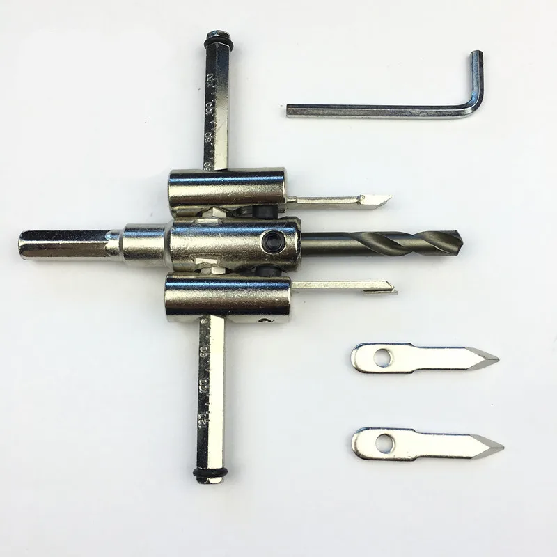 1: Before starting operation, check whether all screws are tightened 2: If the cutter head is not used for a long time, you can grind the cutter head. 3: Be sure to hold it well during operation to prevent accidents. Applicable materials: wood board, plastic board, plywood, gypsum board, etc. Widely used for DIY speaker openings, spotlight openings, woodworking openings, plastic board openings, etc. (working depth 25MM) Hole opener features: drilling round, hole cut flat, smooth without burr, straightness is good. How to use: This hole opener can be installed and operated on a common hand drill table (please tighten the screws before using and start drilling.) Precautions for use: When replacing the drill bit, cut off the power and then replace it. The drill cuttings generated during drilling and the sharp cutting heads are strictly prohibited to be cleaned directly by hand. Use special tools to clean the cuttings.