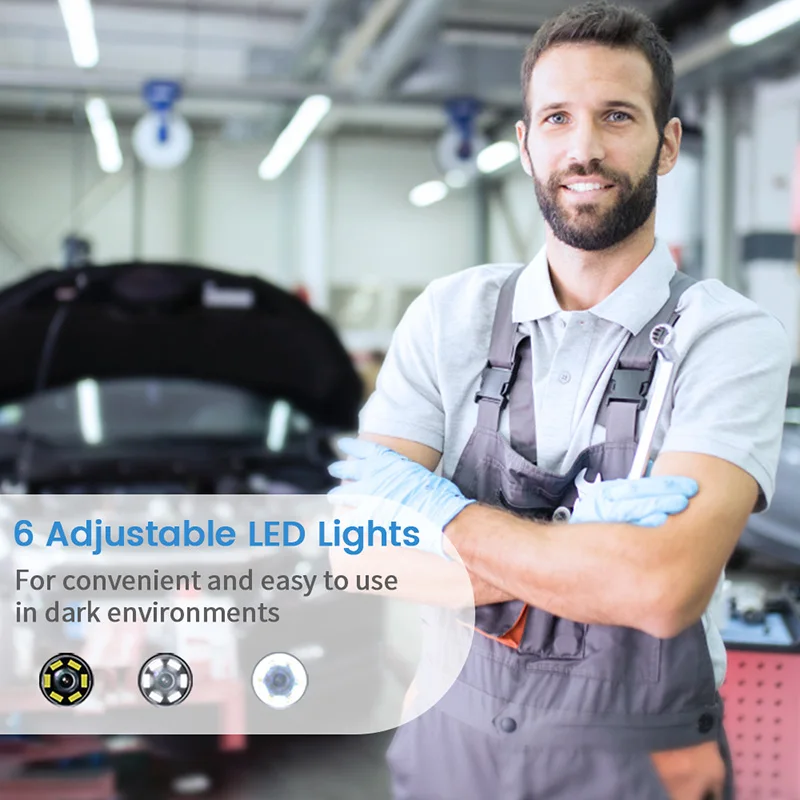 Монитор: 5-дюймовый цветной ips-экран Разрешение: 1,0 мегапикселей HD 1920*1080P Угол обзора по горизонтали: 70 ° Длина шнура: 16.5FT/5M Фокусное расстояние: 1,2 дюйма-4 дюйма/3 см-10 см Степень водонепроницаемости: IP67 Диаметр линзы: 5,5 мм Источник света: 6 светодиодных ламп (регулируемый) Выносливость аккумулятора: около 3-4 часов Использование: автомобильный двигатель, вентиляционное отверстие, промышленные, строительные площадки, ремонт, обслуживание дома, трубопровод, потолок, стены, электронное оборудование, Инспекция технического обслуживания, корабль, самолет, сборка деталей и т. Д.