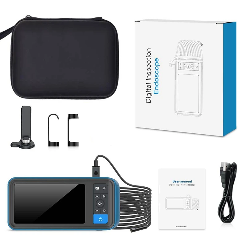 MS450 Инспекционная камера 16,4 фута/5 метров Полужесткий кабель Кабель для зарядки типа C Руководство пользователя Экран кронштейн Аксессуары: hock, магнит Черная сумка для переноски