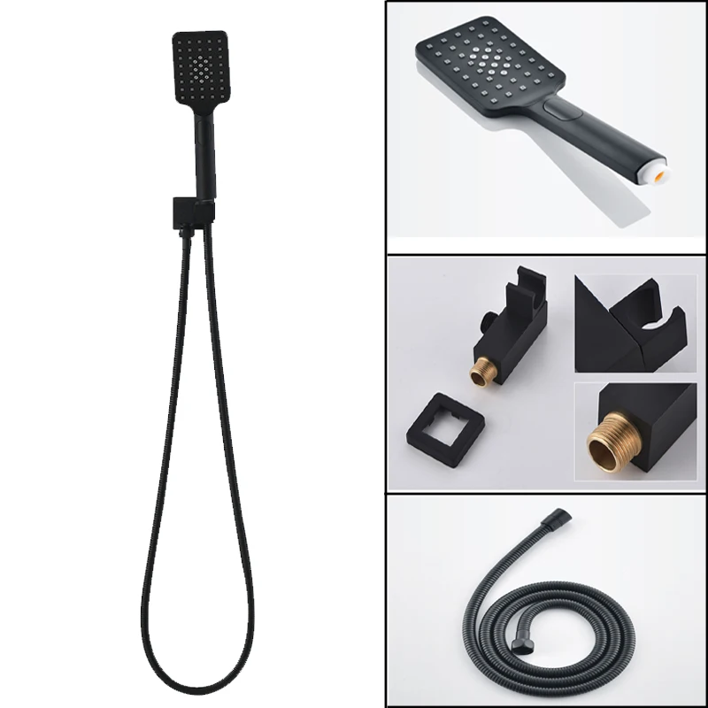 1. Продукция BRG001 включает черный шланг для душа 2.BS029 продукт включает в себя ручной душ 3.BS029-2 продукт включает в себя ручной душ и шланг для душа. 4.BS029-3 продукт включает в себя ручной душ, шланг для душа и держатель для душа 4. Ручной душ изготовлен из АБС-пластика. 5. Держатель для душа изготовлен из латуни. 6. Шланг для душа изготовлен из нержавеющей стали 304. 7. Отделка поверхности: черный