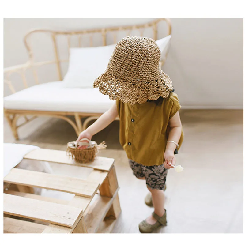 Детская шляпа от солнца в рыбацком стиле, вязаная вручную шляпа для родителей и детей, детская соломенная шляпа, Солнцезащитная шляпа для девочек