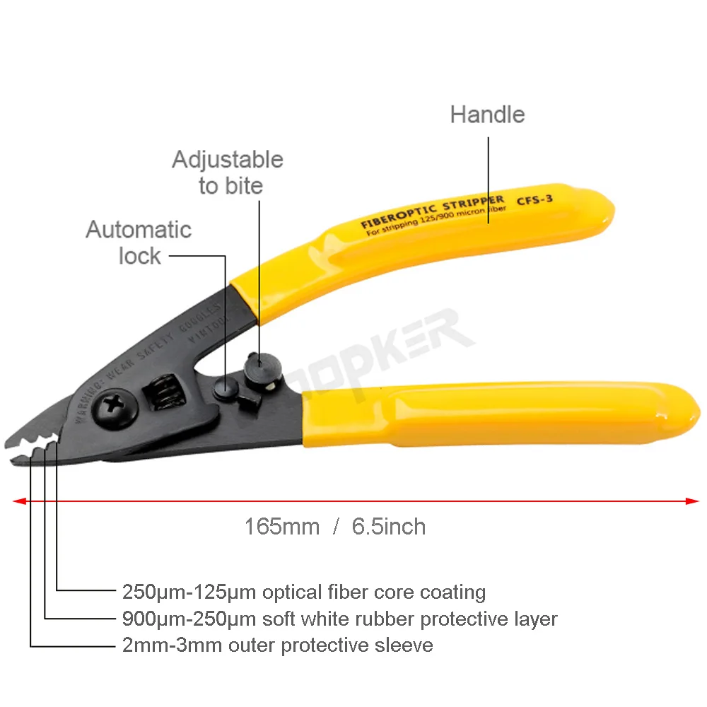 -Подходит для большинства применений услуг оптической сети. -Используется для зачистки 125мкм и 250мкм слоя оптического волокна. -Большое Отверстие используется для снятия внешней оболочки из хвостового волокна. -Точность механической для обеспечения чистой, гладкой работы. -Эргономичный дизайн ручки, удобный захват.