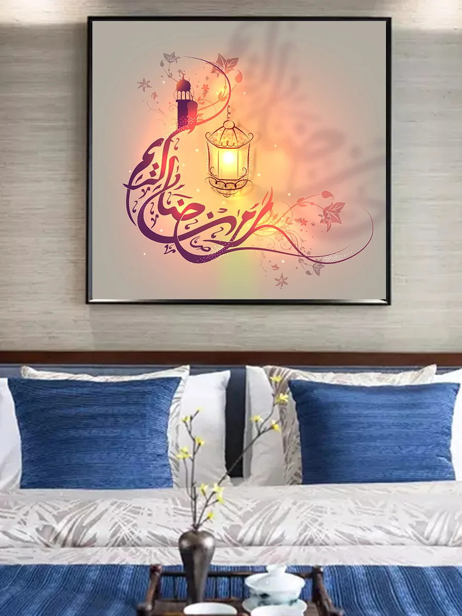 Счастливый Рамадан фонарь картина маслом холст рамка живопись ядро ИД Мубарак наклейки на стену Гостиная Спальня украшение живопись