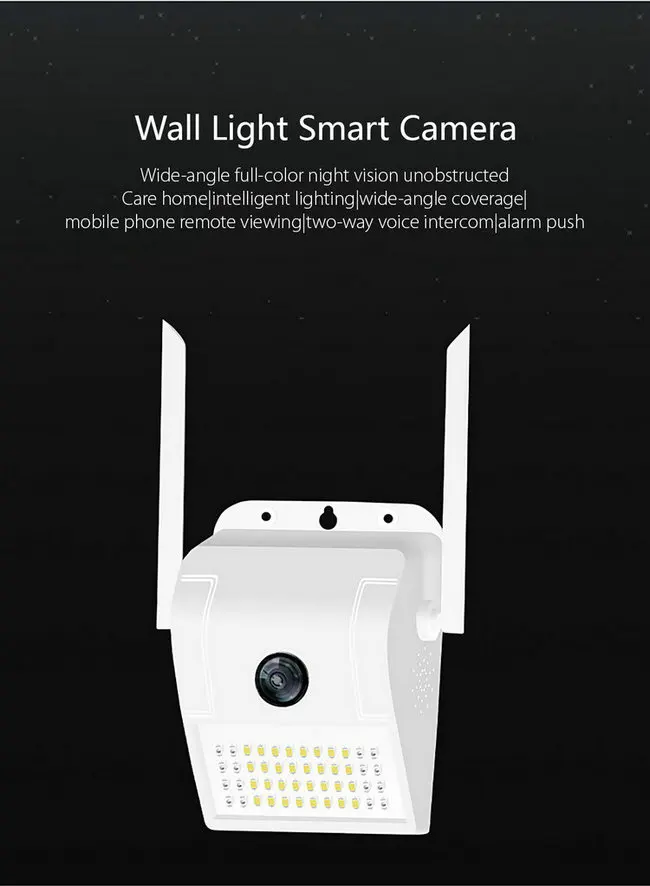 Параметры продукта Разрешение сенсора 1920 x 1080P Пиксели 200 Вт Объектив F2.3_2.53 мм Угол обзора панорамный 180 ° Кодирование видео H.265 / 20FPS, AVI Видео Формат PAL Минимальная освещенность 0,01 лк Цифровая Широкая Динамическая Поддержка Поддержка ONVIF Шумоподавление 3D LED 32 Белый свет + 16 Инфракрасный свет Ночная версия Расстояние 5-10м (отличается от окружающей среды) Интернет WIFI (IEEE802.11b / g / n) Интерфейс RJ45 (10 Мбит / с / 100 Мбит / с адаптивный) 2.4G (не поддерживает 5G) Аудио Встроенный микрофон и динамик, поддержка двусторонней передачи звука в режиме реального времени, стандарт сжатия звука ADPCM, самоадаптирующийся поток Сетевой протокол TCP / IP UDP; RTSP; HTTP DDNS, DHCP, FTP, NTP TF-карта с поддержкой хранения (макс. 128G) Мощность 5V / 1.6A Рабочая среда Рабочая температура: -10 ℃ ~ + 50 ℃ Рабочая влажность: ≤95% относительной влажности Характерная черта: - HD 1080P настоящее качество Разрешение 1920x1080P в формате Full HD, панорамный вид на 180 °, более четкое изображение - Smart Induction, Настенный светильник для внутреннего двора Ночью, когда кто-то входит, он автоматически начинает светиться и отпугивает вора. - IP66 Водонепроницаемый уровень Водонепроницаемый, адаптироваться к окружающей среде даже в плохую погоду - Поддержка обнаружения движения Интеллектуальное обнаружение движения, своевременное информирование о состоянии дома, полезное для домашней безопасности - Поддержка HD Night Vision Качество изображения высокой четкости позволяет сохранить больше деталей, инфракрасное ночное видение с шумоподавлением даже ночью позволяет получить четкое изображение - Двусторонняя Аудио Встроенный динамик и микрофон, и поставляется с эхоподавлением, двусторонний контроль звука - Поддержка удаленного просмотра терминала для нескольких человек Поддержка удаленного просмотра с мобильного телефона или планшета и одновременный обмен фотографиями в режиме реального времени с семьей и друзьями.