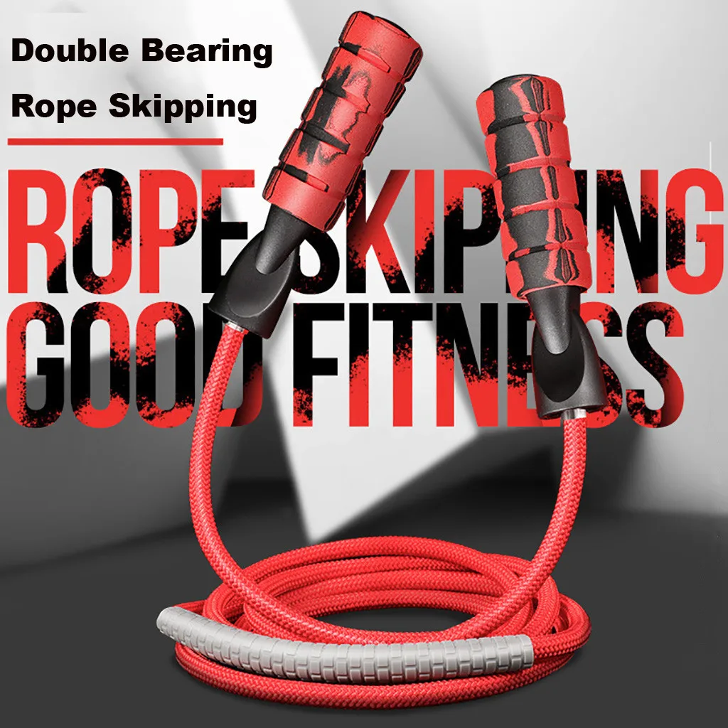 Профессиональная Скакалка с двойным шариковым подшипником, утяжеленная хлопковая веревка, регулируемая длина, для кардио-тренировок, тренировок на выносливость, фитнеса, упражнения с прыжками