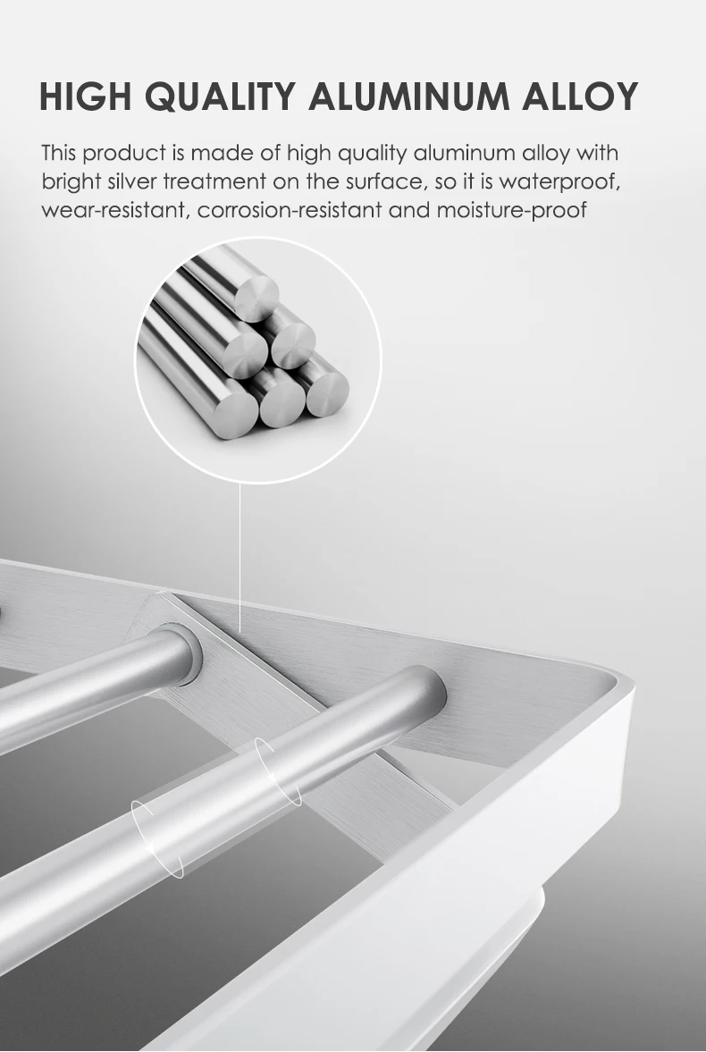 Adhesive shelf Material: Aluminum Brand : JOMOO Model : 9300209-7Z-1 Rustproof Silver plating Gross Weight: 0.88kg Net weight: 0.76kg Item Dimensions : 611.5mm (length) * 129mm (width) * 30mm (height) Package Dimensions : 620mm (length) * 140mm (width) * 50mm (height) Item Package Quantity : 1 Certification : Not Applicable Included Components : Towel Rail Rack 60CM