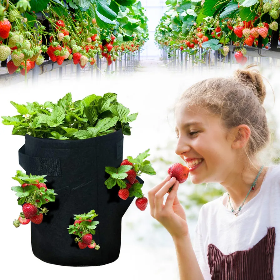 Клубника посадки FeltCloth мешок-контейнер для посадки растений утолщаются садовый горшок